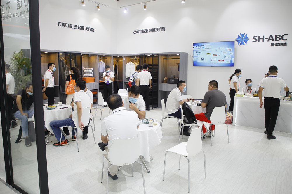 星徽展廳分為歐式家居五金解決方案、美式家居解決方案、衛(wèi)浴柜五金解決方案、衣柜功能五金解決方案、廚房功能五金解決方案以及拆裝連接件幾大區(qū)域,各區(qū)域根據(jù)產(chǎn)品分類進(jìn)行布置,特色鮮明,主題突出,展區(qū)陳列設(shè)計(jì)簡(jiǎn)潔,讓參觀客戶獲得真實(shí)的體驗(yàn)效果。