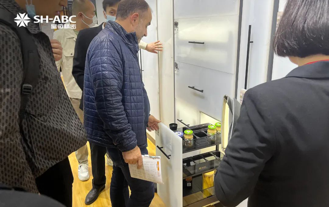 星徽精密在此次展位形象和產(chǎn)品發(fā)布上下足了功夫,充滿無限創(chuàng)意和專業(yè)化的設(shè)計讓星徽精密展區(qū)在人氣和體驗上更勝一籌。展廳圍繞歐式廚柜五金、美式櫥柜五金、浴室柜五金、衣帽間以及廚房功能五金幾大場景,根據(jù)產(chǎn)品分類進行搭配,特色鮮明,主題突出,展區(qū)陳列設(shè)計簡潔,讓參觀客戶體驗到高端五金在家居生活中的實際使用。